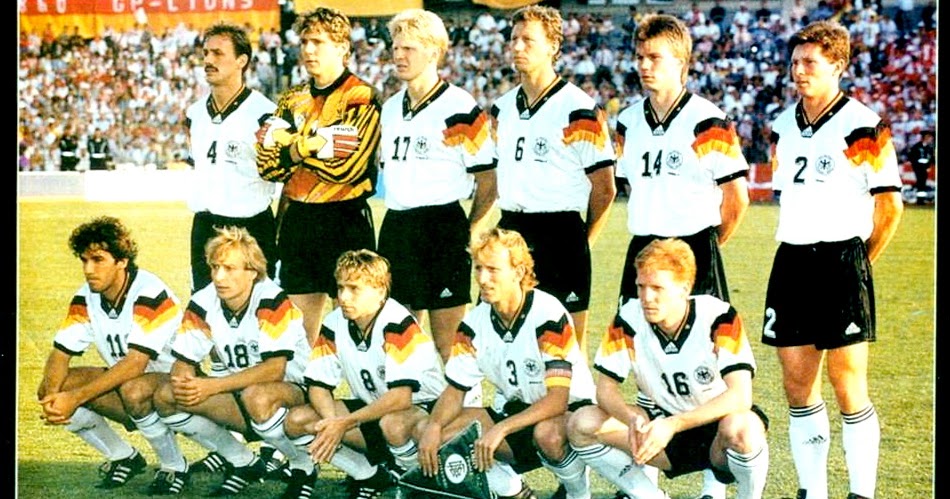 SELECCIÓN DE ALEMANIA – Temporada 1991-92 – Kohler, Illgner, Effenberg, Buchwald, Helmer y Reuter; Riedle, Klinsmann, Hassler, Brehme y Sammer – DINAMARCA 2 (Jensen y Vilfort) ALEMANIA 0 – 26/06/1992 – Eurocopa de 1992, final – Götteborg, Suecia, estadio Ullevi – DINAMARCA, cuyos jugadores se encontraban de vacaciones y que fue invitada a última hora por la exclusiónde Yugoslavia, dio la gran sorpresa y ganó su 1ª Eurocopa de Naciones